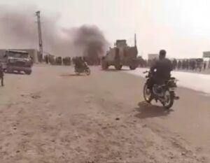 وأشارت المصادر إلى أن المتظاهرين قطعوا الطريق الرئيس المؤدي إلى البلدة بالإطارات المشتعلة والحجارة، مرددين هتافات تدعو إلى طرد ميليشيا “قسد” من المنطقة وإنهاء اعتداءاتها وجرائمها بحق الأهالي.
