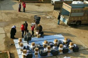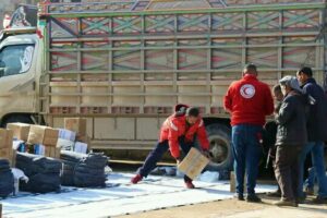 وشملت المساعدات سلة غذائية وسلة معلبات وشواحن وبطانيات بدعم من اللجنة الدولية للصليب الأحمر الدولي