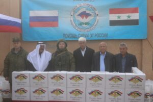 وزع مركز المصالحة الروسي في حطلة اليوم 300 سلة غذائية و مساعدات طبية لأهالي بلدة مراط بريف دير الزور الشرقي.