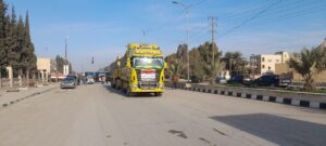محافظة ديرالزور تسير قافلة مساعدات اغاثية مقدمة من ابناء المحافظة الى المتضررين من الزلازل في المحافظات السورية.