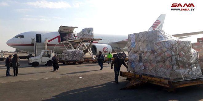 وصلت طائرة مساعدات مقدمة من منظمة الصحة العالمية إلى مطار دمشق الدولي تحمل 37 طناً من المواد الطبية الإسعافية ومواد لمعالجة النزلات الرئوية وخيماً للمتضررين من الزلزال.