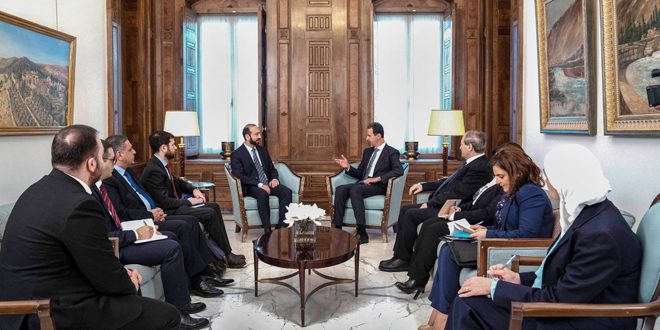 استقبل السيد الرئيس بشار الأسد اليوم وزير خارجية أرمينيا أرارات ميرزويان.