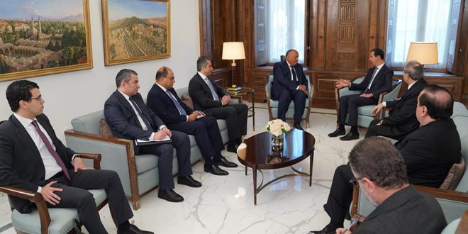 نقل وزير الخارجية المصري سامح شكري للسيد الرئيس بشار الأسد خلال لقائه به اليوم رسالة من الرئيس عبد الفتاح السيسي أكد فيها تضامن مصر مع سورية واستعدادها لمواصلة دعم السوريين بمواجهة آثار الزلزال، وأبلغ سيادته تحيات الرئيس السيسي واعتزازه بالعلاقات التاريخية بين سورية ومصر، وحرص القاهرة على تعزيز هذه العلاقات وتطوير التعاون المشترك بين البلدين.