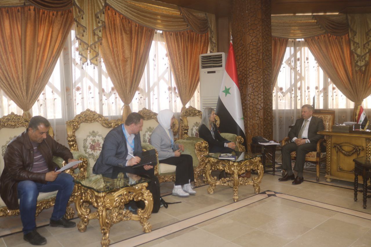 بحث السيد محافظ ديرالزور فاضل نجار مع وفد المفوضية السامية للأمم المتحدة لشؤون اللاجئين برئاسة نائب ممثل مكتب المفوضية بسورية ماريا ستافرو بولو والوفد المرافق ، المشاريع المشتركة و سبل تعزيز التعاون بين المحافظة والمفوضية ، مبيناً أهمية الدور الذي تقدمه المنظمات الدولية في المجال الإغاثي والإنساني داعيا إلى زيادة حجم المشاريع والإسهام الفاعل في سبيل تقديم كل ما يسهم في تخفيف معاناة الأهالي.