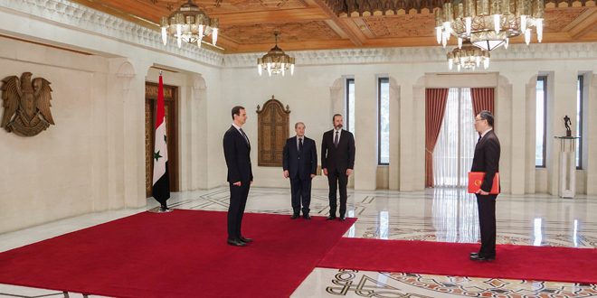 تقبل السيد الرئيس بشار الأسد اليوم أوراق اعتماد شي هونغوي سفيراً مفوضاً وفوق العادة لجمهورية الصين الشعبية، ولويس ماريانو فرنانديز رودريغيز سفيراً مفوضاً وفوق العادة لجمهورية كوبا لدى الجمهورية العربية السورية.