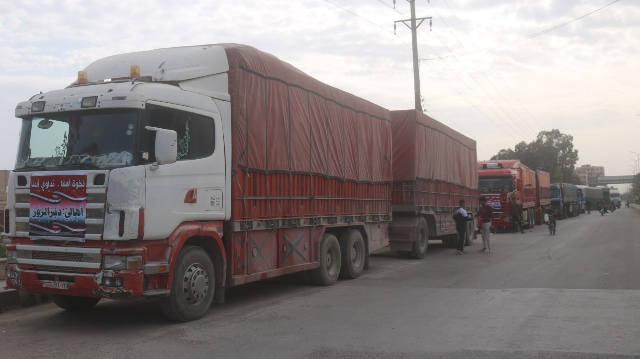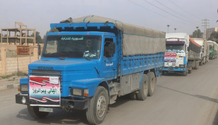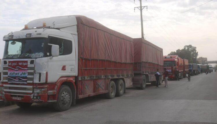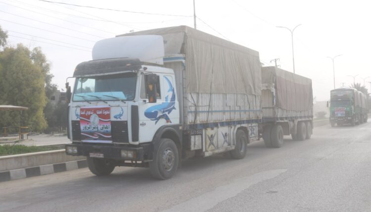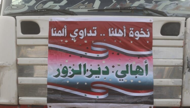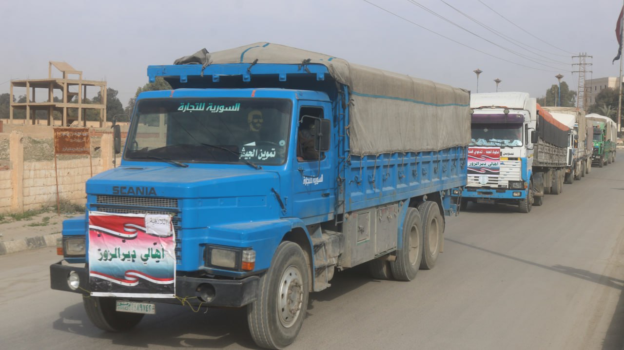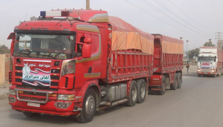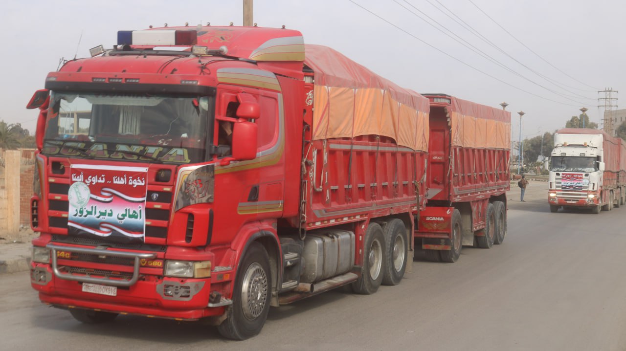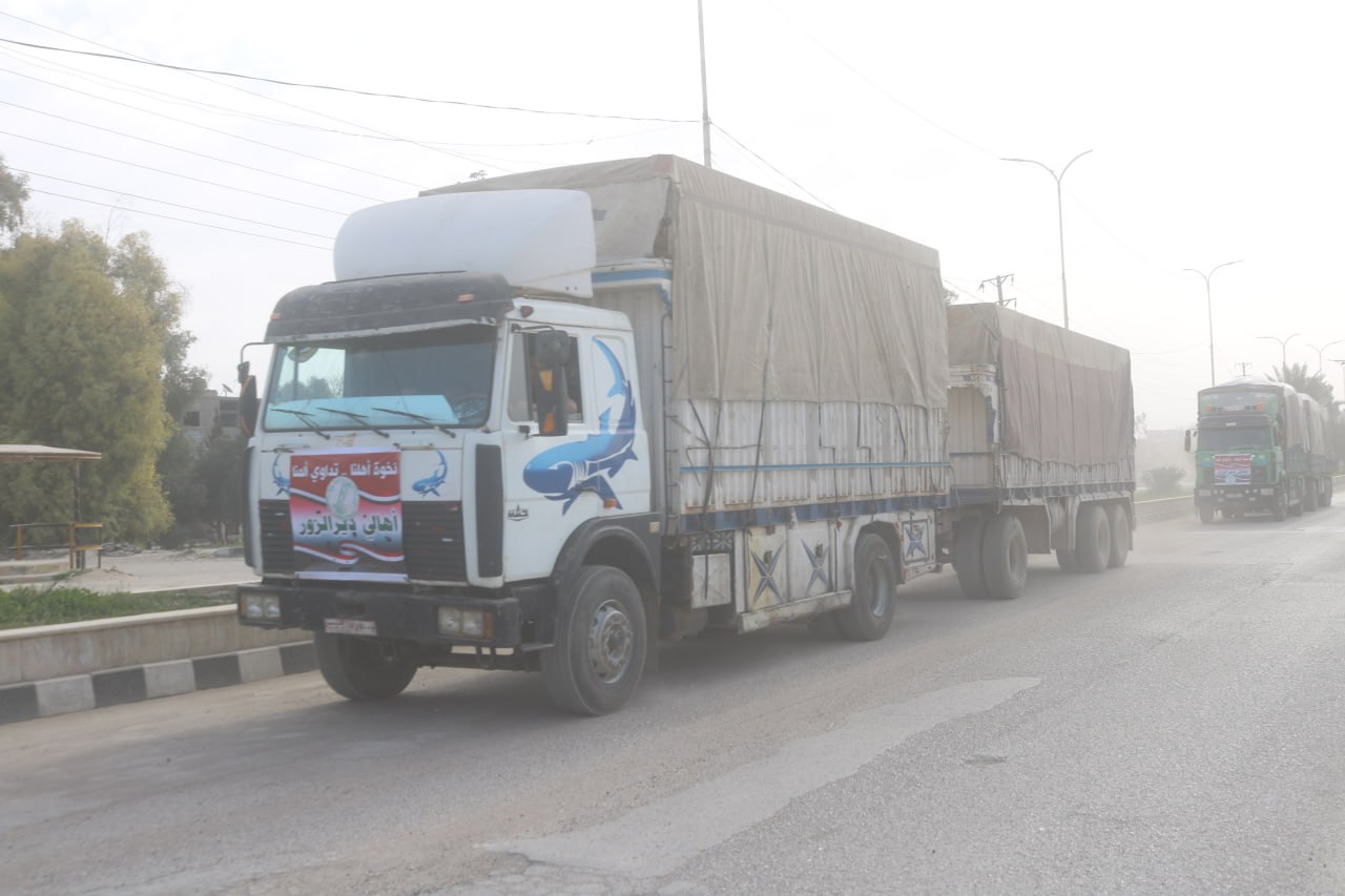 سيرت محافظة دير الزور اليوم قافلة مساعدات اغاثية مقدمة من أهالي المحافظة إلى المتضررين من الزلزال في محافظتي حلب و اللاذقية