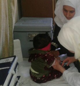 وذكر مدير الصحة الدكتور بشار شعيبي ان الحملة التي يتم تنفيذها بدير الزور من خلال 32 مركزا ثابتا يعمل بها 142 عنصرا و57 فريقا جوالا يضم 291 عنصرا تستهدف الأطفال دون 5 سنوات لمتابعة اللقاحات الروتينية وقامت المديرية تجهيز كافة مستلزمات الحملة ، داعيا الأهالي للمبادرة لاستكمال لقاحات أطفالهم ولافتا ان اللقاح آمن ومجاني ولاتمنع الامراض الشائعة في مثل هذا الوقت من العام من تلقي اللقاح .