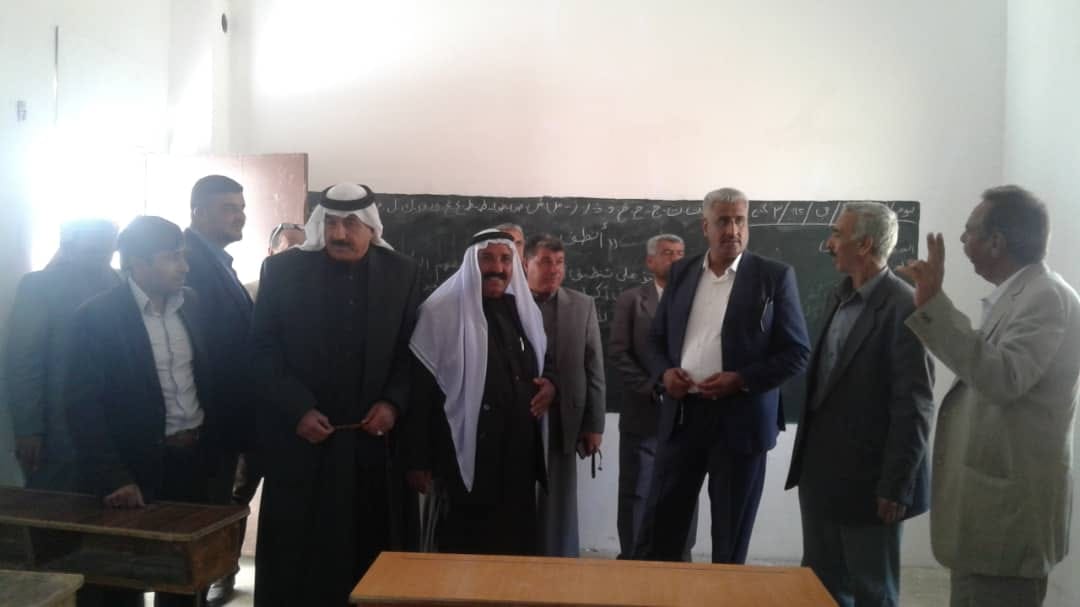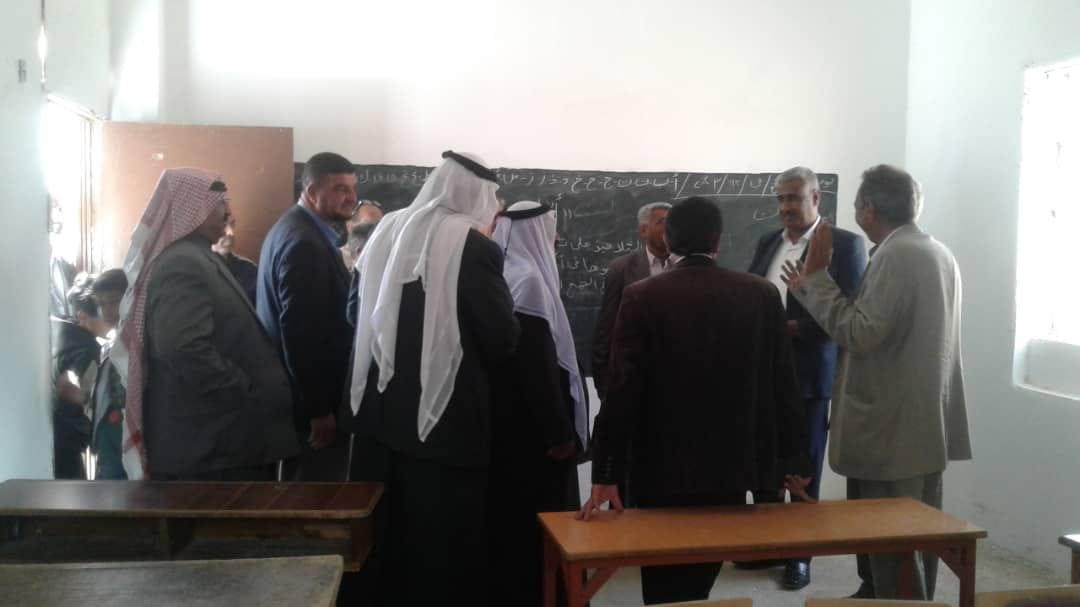 مدير التربية بدير الزور جاسم الفريح التقى وجهاء البلدة ووجه لهم الشكر على ما قدموه لمديرية التربية ومجمع العشارة التربوي.