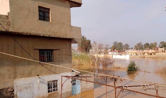 تسبب ارتفاع منسوب مياه نهر الخابور اليوم بغمر عدد من منازل المواطنين على ضفتي النهر في مدينة الحسكة، وتحديداً في أراضي حيي حبو والمريديان، واقتصرت الأضرار على الماديات.
