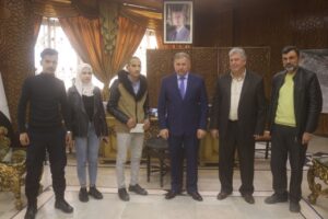 قدم السيد محافظ دير الزور فاضل نجار جائزة التفوق الدراسي المقدمة من المجلس المركزي لشؤون الأشخاص ذوي الإعاقة للطالبة نور الهدى العلي لتفوقها في الثانوية العامة الفرع الادبي ، وجائزة المشروع متناهي الصغر للسيد أسامة محمد بدري العبادي وذلك بحضور عضو المكتب التنفيذي المهندسة مرام العسكر ومدير الشؤون الاجتماعية والعمل احمد اطليوش وامين المجلس الفرعي للأشخاص ذوي الإعاقة بدير الزور.