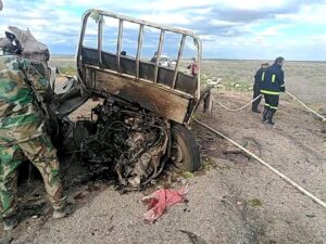 وفاة 6 أشخاص في حريق نشب بسيارتين في منطقة كباجب جنوب ديرالزور رئيسيمحليات في 31 آذار , 2023 شارك FacebookTwitterWhatsAppTelegramFacebook Messenger أخمد عناصر فوج إطفاء دير الزور حريق نشب بسيارتين من نوع شفروليه واخرى انتر بلوحات عراقية محملة بالخضار في منطقة كباجب جنوب ديرالزو مما ادى إلى وفاة 6 اشخاص واحتراق السيارتين بالكامل وتم نقلهم إلى مشفى الأسد. الفرات ضياء دواره