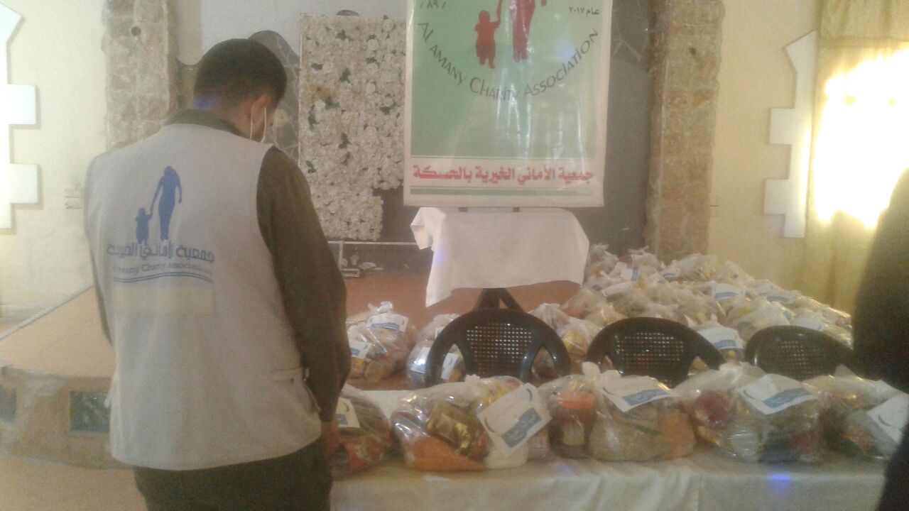وزعت جمعية (الأماني) الخيرية في مدينة الحسكة 100 سلة غذائية على الفئات الأكثر هشاشة شملت الأرامل والأيتام والمرضى والفقراء.