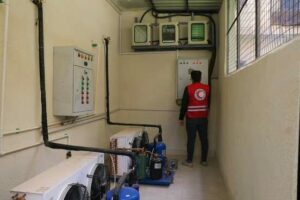 وبين رئيس فرع الهلال علي منصور أن الأعمال المنفذة تضمنت إنشاء بناء مؤلف من طابق واحد مقسم إلى براد للموتى و غرفة تشريح الجثث مع مستلزماتها، بالإضافة إلى تأمين شبكة كهرباء و تكييف و إنارة للبناء، وذلك بدعم من اللجنة الدولية للصليب الأحمر.