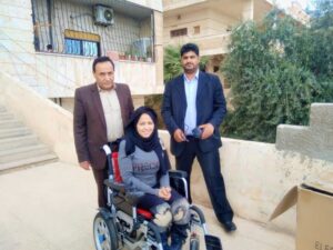 بتوجيه من الدكتور لؤي صيوح محافظ الحسكة قام عضو المكتب التنفيذي لقطاع الشؤون الاجتماعية والعمل بتسليم الشابة زينة عباس حريميس كرسي كهربائي متحرك .