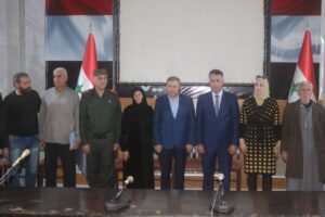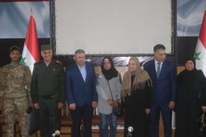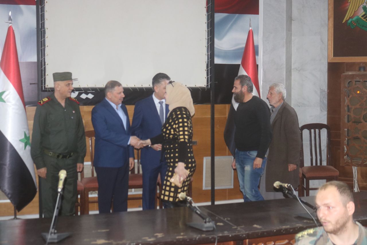 بمناسبة شهر رمضان المبارك وضمن أسابيع الخير التي تقيمها محافظة دير الزور بالتعاون مع المجتمع المحلي ، كرم السيد محافظ دير الزور فاضل نجار وامين فرع حزب البعث العربي الاشتراكي الرفيق رائد الغضبان وقائد شرطة المحافظة اللواء بلال محمود اليوم 50 اسرة من ذوي الشهداء العسكريين والمدنيين .