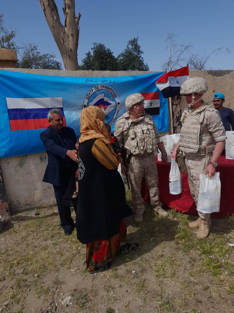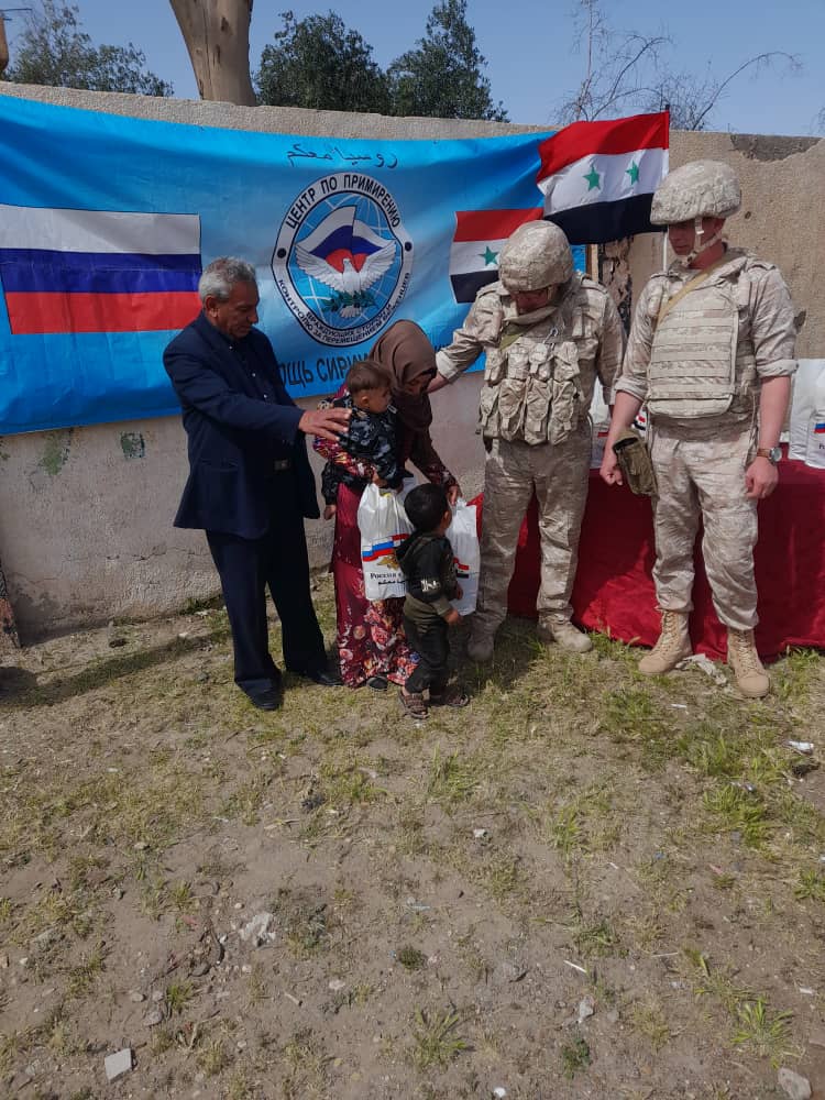 بدوره رئيس مركز المصالحة الجنرال أندريه أوضح بأن ما يقدمه المركز جاء كتعبير عن عمق الصداقة والعلاقات الطيبة التي تربط شعب وقيادة البلدين ، ويجري التوزيع شهرياً لقريتين أو ثلاث وذلك بالتنسيق مع مخاتير ووجهاء المناطق المعنيين بالريف المذكور ، ناهيك عن توزيع الدواء للحالات المرضية، كما شملت عمليات التوزيع معلمي ومعلمات بلدتي مظلوم والطابية ، هذا وعبر الأهالي عن تقديرهم للمواقف الروسية في مجال الدعم الإنساني ومواجهة الإرهاب .