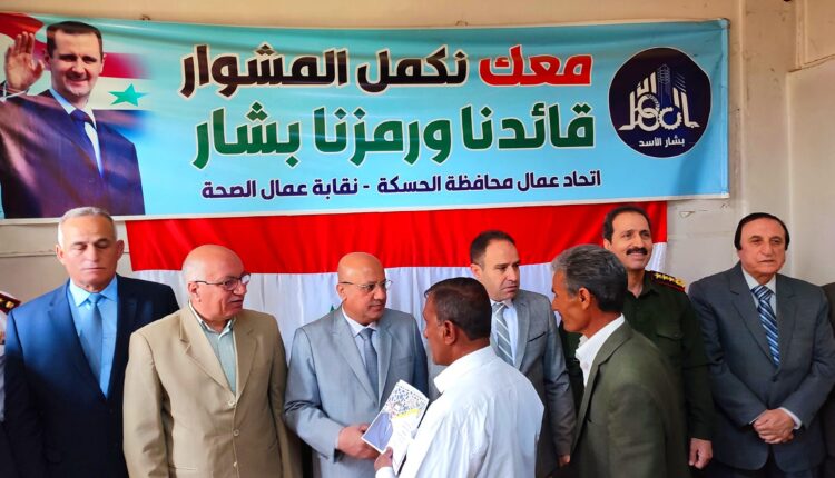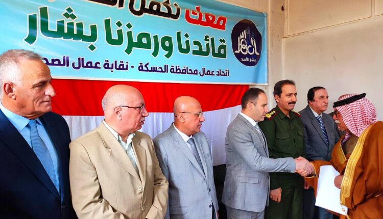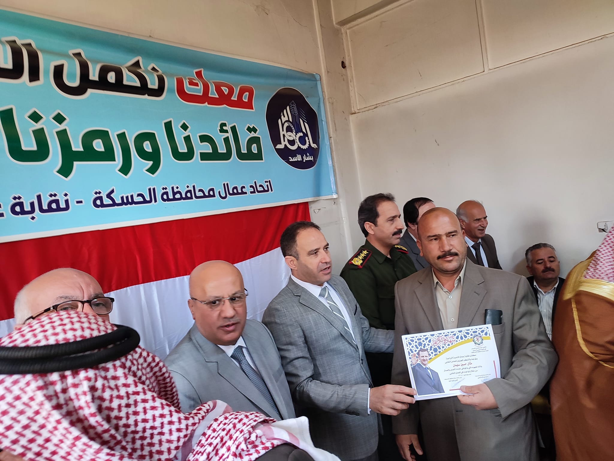 بدوره هنأ أمين فرع الحسكة للحزب أبناء الطبقة العاملة التي كانت خلال سنوات الحرب على سورية رديفاً للجيش العربي السوري من خلال زيادة الإنتاج حيث كانت طبقتنا العاملة العامل الأساسي لصمودنا الاقتصادي .