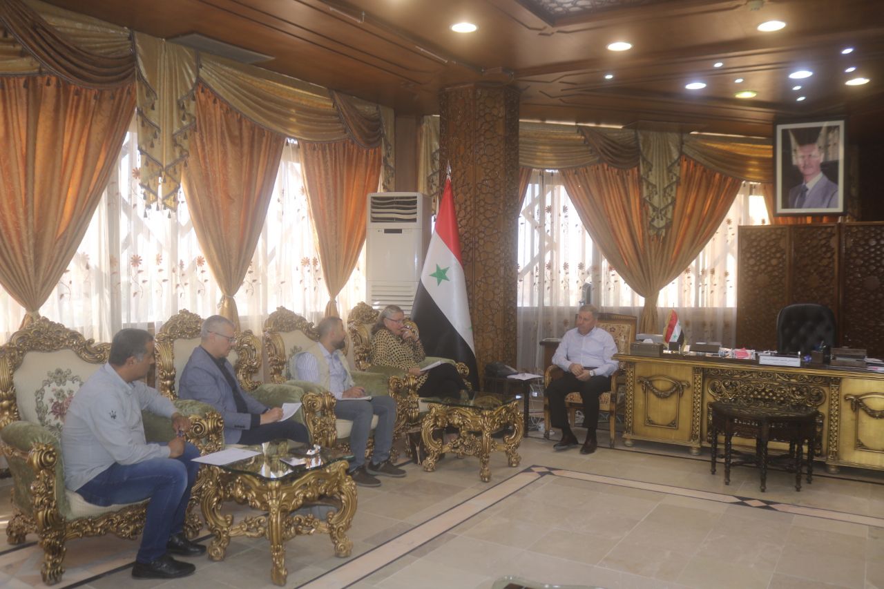 وقدم السيد المحافظ عرضا عن واقع محافظة دير الزور واحتياجاتها لاعادة دوران عجلة الإنتاج التي تسهم في عودة واستقرار الأهالي في منازلهم وقراهم وتوفير فرص عمل في اطار التنمية المستدامة ، مؤكداً الاستعداد الدائم لتقديم التسهيلات اللازمة بما ينعكس على تحسين الواقع الخدمي والاجتماعي والاقتصادي في دير الزور .