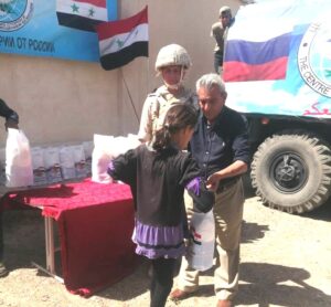 من جانبه أكد رئيس مركز المصالحة الروسي أن ما يقدمه المركز هو واجب تجاه الدولة والشعب السوريين، حيث يجري التوزيع بشكل شهري ، بمعدل قريتين إلى ثلاث قرى ، ويتم ذلك بالتنسيق مع مخاتير ووجهاء المناطق التي يراد التوزيع بها .