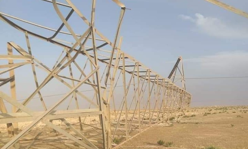 خرج خط توتر كهرباء الطبقة الأبواب 230 ك ف المغذي لمحافظة الحسكة عن الخدمة، جراء انهيار برجين للتوتر على مسار الخط.