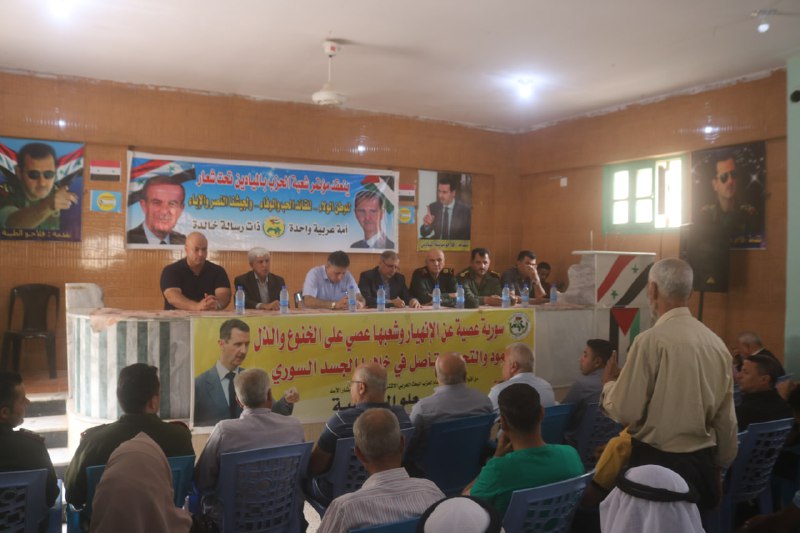 كما عقد لقاء جماهيري في مبنى الرابطة الفلاحية في الميادين ضم رؤساء الوحدات الإدارية التابعة لمنطقة الميادين و عدد من الوجهاء والمخاتير و رؤساء الجمعيات الفلاحية والوحدات الارشادية تم خلاله مناقشة الواقع الخدمي والمعيشي ، وواقع عمليات حصاد وتسويق الحبوب ، والإجراءات المتخذة من كافة الجهات المعنية للوصول الى موسم آمن .