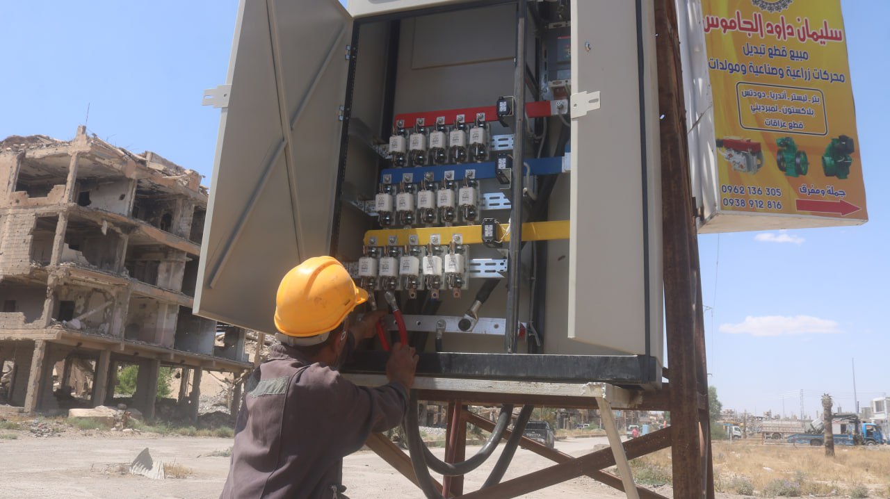 باشرت الشركة العامة لكهرباء دير الزور اعمال توصيل التيار الكهربائي الى المنطقة الصناعية في المدينة، والتي يجري العمل على إعادة تأهيلها بالتعاون مع المنظمات الدولية.