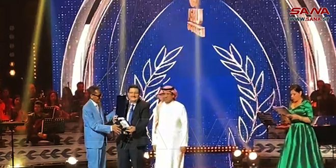 كرم اتحاد إذاعات الدول العربية وزير الإعلام الدكتور بطرس حلاق، خلال افتتاح فعاليات المهرجان العربي للإذاعة والتلفزيون في دورته الـ 23، والمقام حالياً في تونس بعنوان “الفنون والثقافة تجمعنا”.