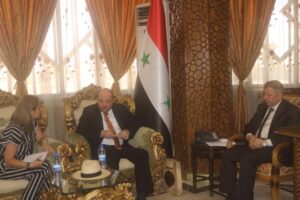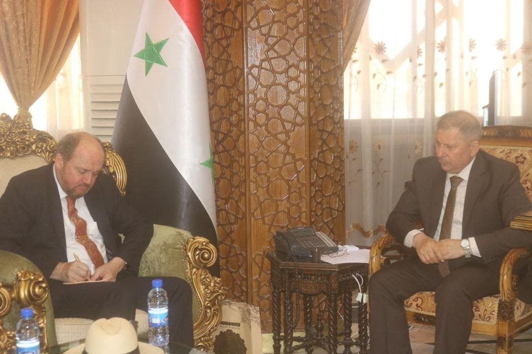 بحث السيد محافظ دير الزور فاضل نجار مع سفير النمسا بدمشق /بيتر كرويس/ آليات التعاون المشترك في عدد من المجالات الخدمية والتنموية والثقافية.