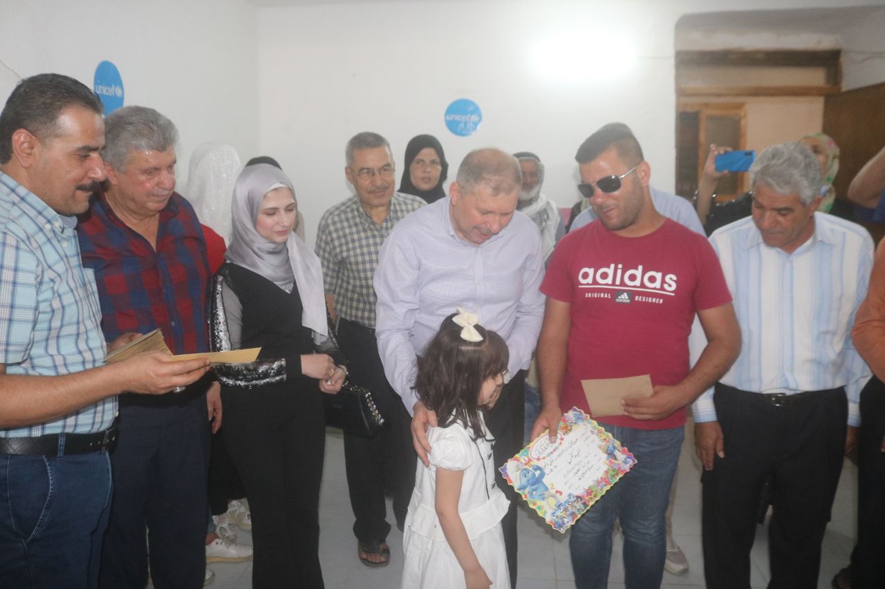 حضر الاحتفالية عضو المكتب التنفيذي المهندسة مرام العسكر ومدير الشؤون الاجتماعية والعمل احمد اطليوش ورئيس فريق المحافظة التطوعي عمار السمران ورئيس وأعضاء مجلس إدارة الجمعية الخيرية الإسلامية .
