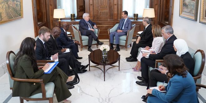 بحث السيد الرئيس بشار الأسد مع مارتن غريفيث وكيل الأمين العام للأمم المتحدة للشؤون الإنسانية ومنسق الإغاثة في حالات الطوارئ حشد الجهود لدعم مشاريع التعافي المبكر المرتبطة بعودة اللاجئين السوريين ومتطلباتها، وإبقاء ملف اللاجئين في إطاره الإنساني والأخلاقي.