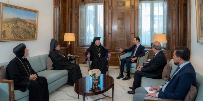استقبل السيد الرئيس بشار الأسد اليوم وفداً من رؤساء الكنائس المسيحية في أستراليا، ضمّ أساقفة الكنائس الأرمنية الكاثوليكية، والأرمنية الأرثوذكسية، والقبطية الأرثوذكسية.