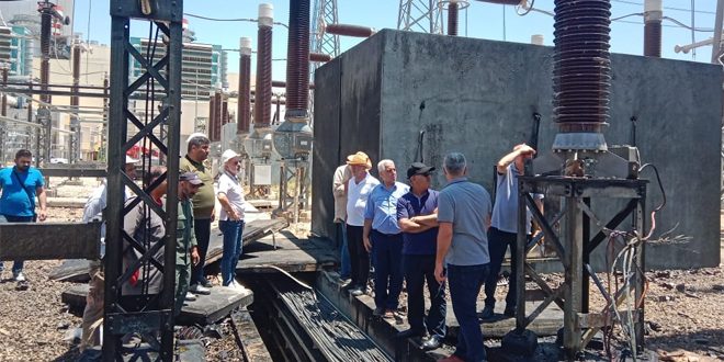 تفقد وزير الكهرباء المهندس غسان الزامل اليوم أعمال الإصلاح الجارية في محطة تحويل كهرباء دير علي 400 ك.ف بريف دمشق.