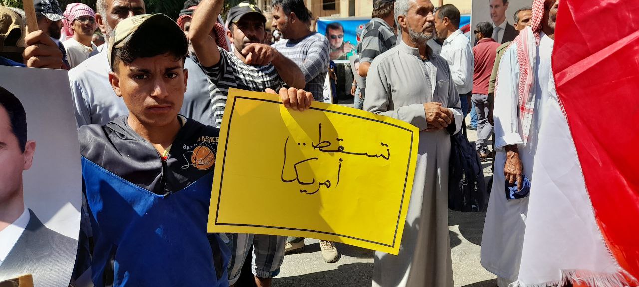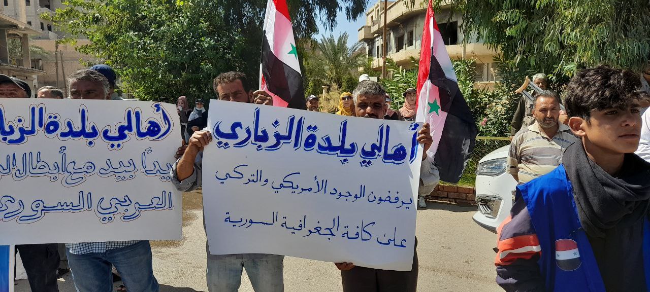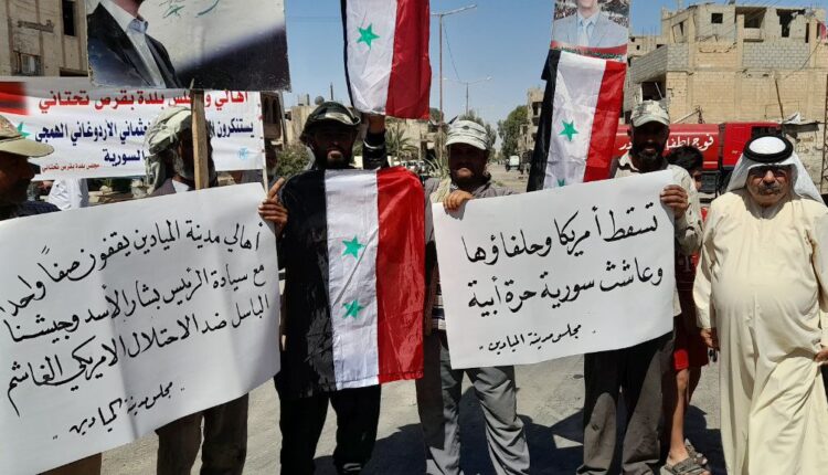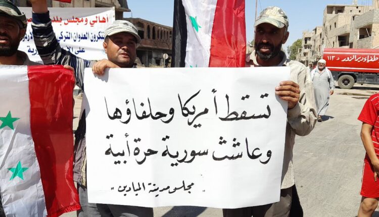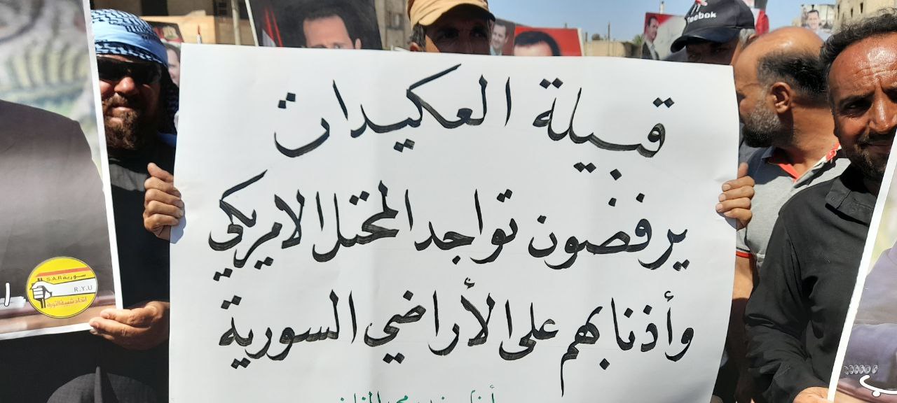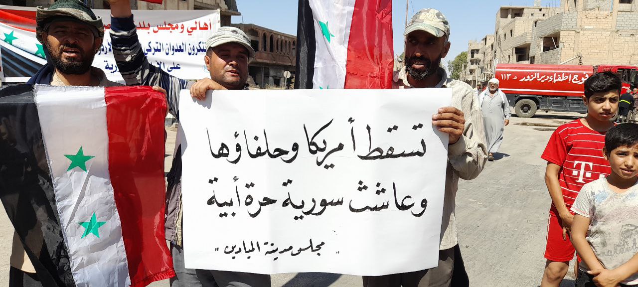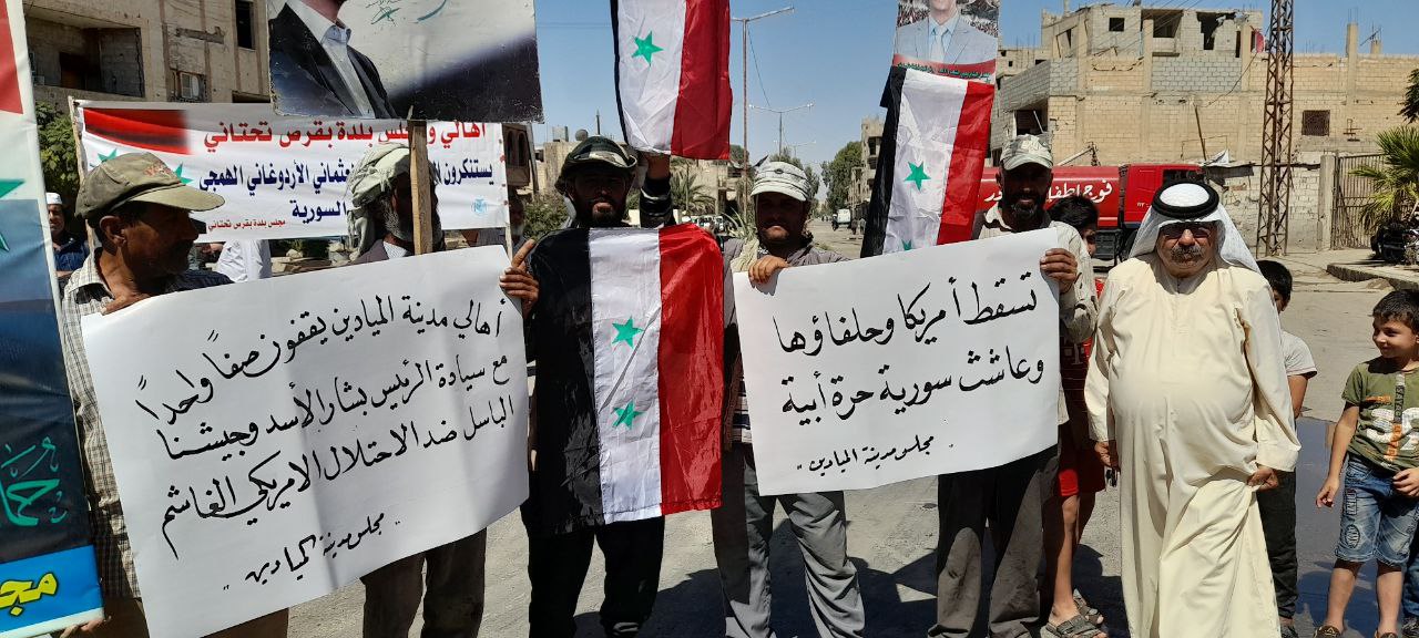 رفضا لتواجد الاحتلال الأمريكي والتركي على الأراضي السورية ، نفذ أهالي ريف دير الزور الشرقي وقفة احتجاجية في مدينة الميادين .