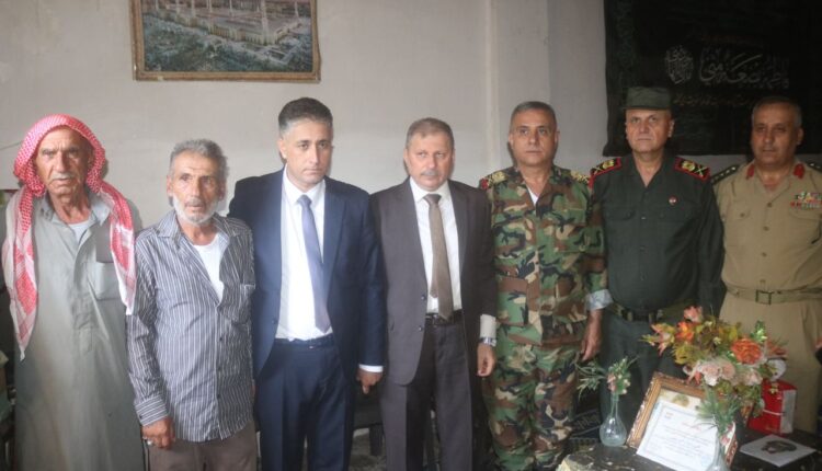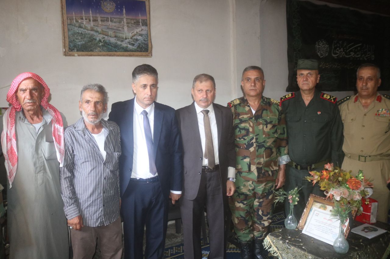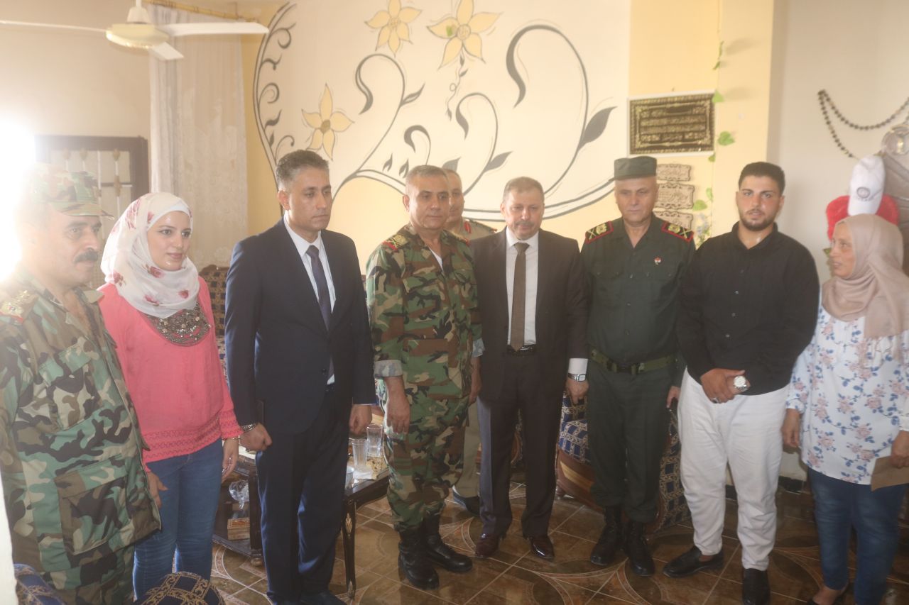 بمناسبة الذكرى الثامنة والسبعين لتأسيس الجيش العربي السوري قام السيد محافظ دير الزور فاضل نجار وأمين فرع حزب البعث العربي الاشتراكي الرفيق رائد الغضبان وقائد المنطقة الشرقية اللواء عمران محمود عمران وقائد شرطة المحافظة اللواء بلال محمود بزيارة عدد من اسر الشهداء وتقديم التهنئة لهم بهذه المناسبة .