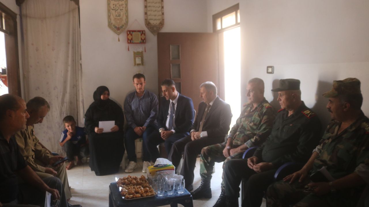 شارك في الزيارة رئيس فرع شؤون الشهداء والجرحى في المنطقة الشرقية العميد بسام الحميد ورئيس فرع التوجيه السياسي في المنطقة الشرقية العميد عبد الواحد الأحمد ومدير مكتب الشهداء في المحافظة يوسف العابد .