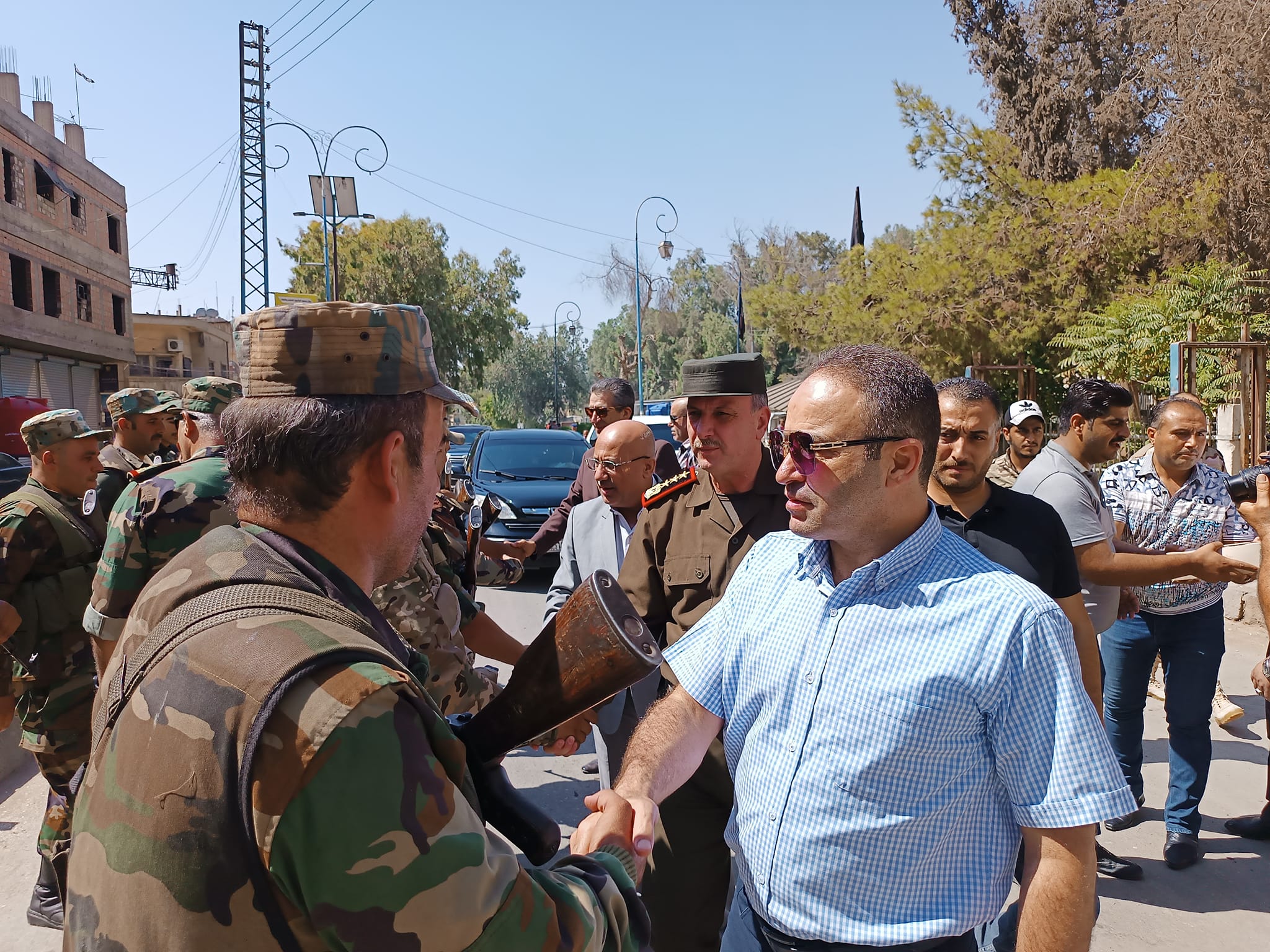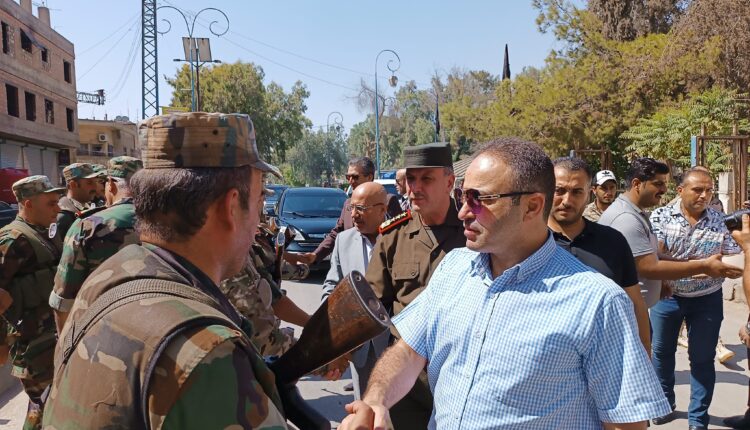 وأكد المحافظ على المضي قُدُماً خلف القيادة الحكيمة للسيد الرئيس بشار الأسد القائد العام للجيش والقوات المسلحة حتى تحقيق النصر على الاعداء.