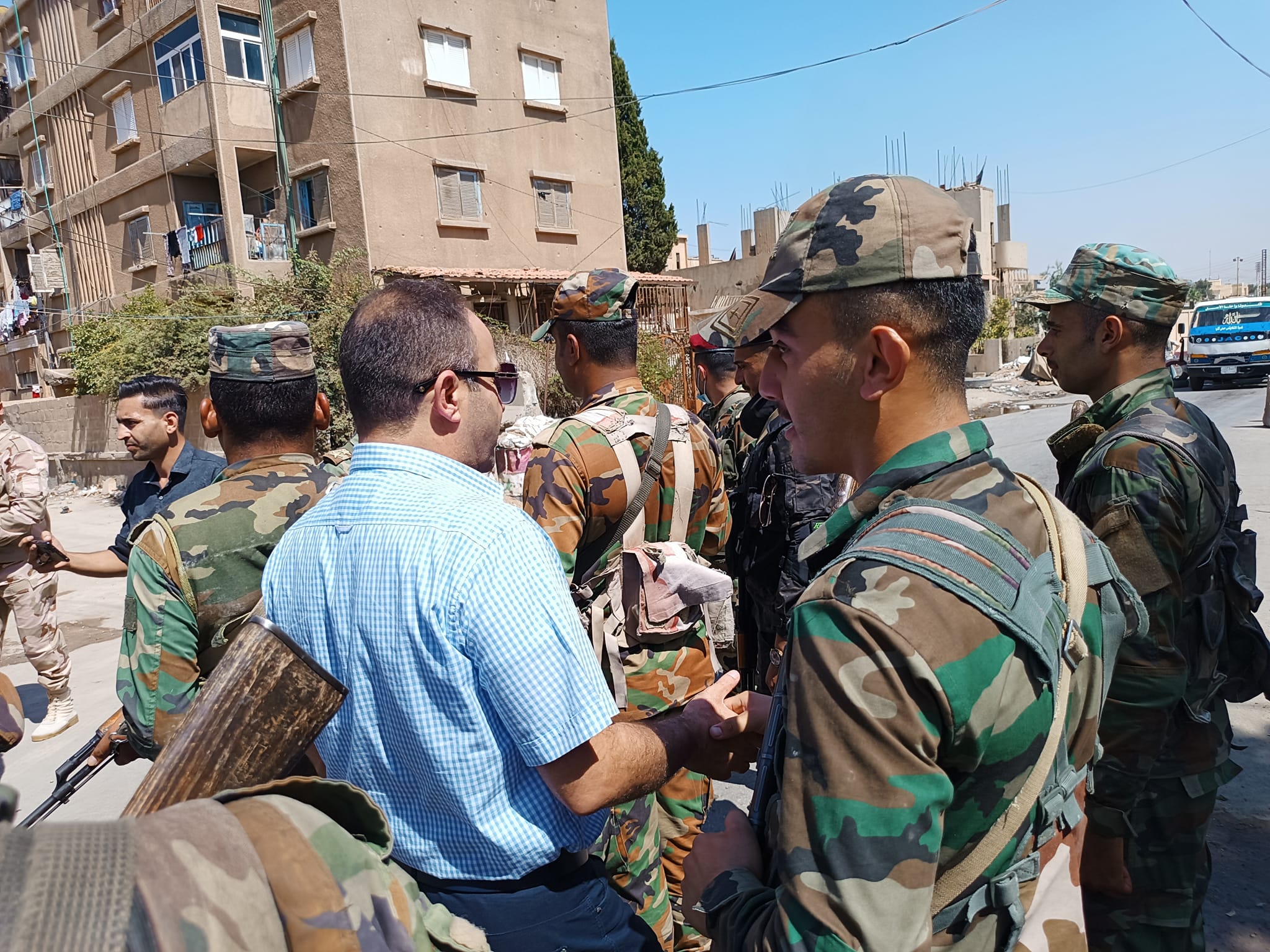 بمناسبة الذكرى الثامنة والسبعين لتأسيس الجيش العربي السوري زار محافظ الحسكة الدكتور لؤي محمد صيوح والمهندس تركي حسن أمين فرع الحزب واللواء محي الدين السليمان القائد العسكري بالحسكة والمحامي العام غازي الشيخ ابراهيم والعميد محمد ياسر شيحة قائد الشرطة عددا من التشكيلات العسكرية و حواجز الجيش العربي السوري والتقوا بالمقاتلين وقدموا لهم التهنئة والتبريك بعيدهم .