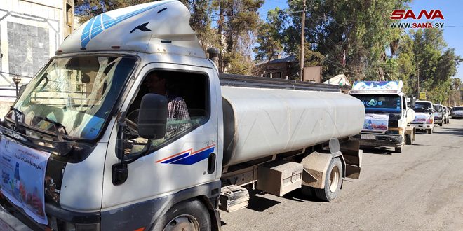 قدم متبرعون من أبناء مدينة القامشلي اليوم 20 صهريجاً محملاً بالمياه بسعة 8 أمتار مكعبة لكل صهريج لتوزيعها على الأهالي في مدينة الحسكة، بإشراف المحافظة بغية إيصال المياه لأكبر عدد ممكن من الأهالي.