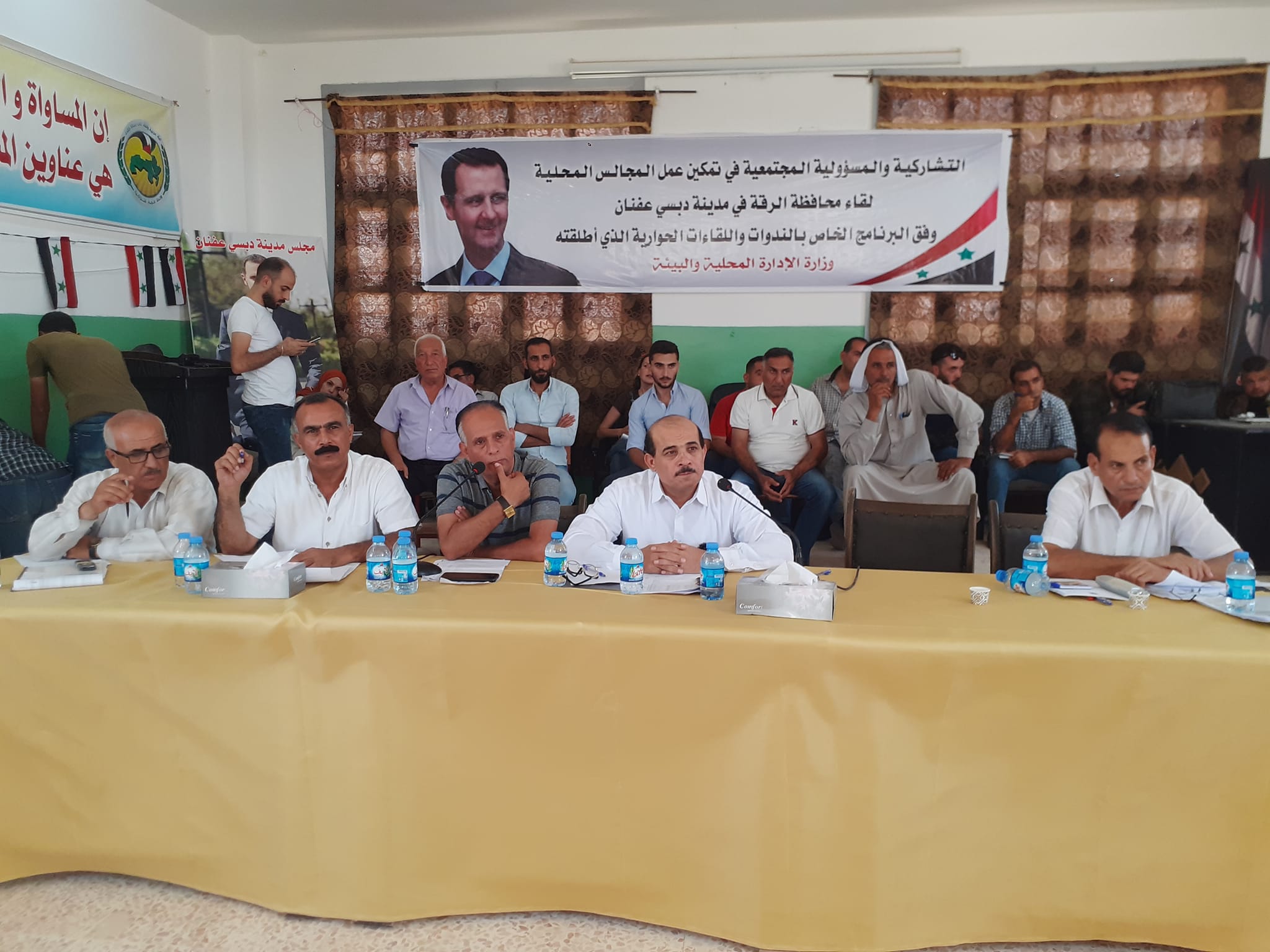 أقامت محافظة الرقة اليوم لقاءً حوارياً بعنوان ( التشاركية والمسؤولية المجتمعية في تمكين عمل المجالس المحلية ) وفق البرنامج الخاص بالندوات واللقاءات الحوارية الذي أطلقته وزارة الإدارة المحلية والبيئة وأكد محافظ الرقة عبد الرزاق خليفة ان هدف الإدارة المحلية هو إيجاد وحدات إدارية قادرة على التخطيط والتنفيذ ووضع الخطط التنموية الخاصة بالمجتمع المحلي وتنفيذ المشاريع بكفاءة وفعالية وتعزيز الإيرادات المالية للوحدات الإدارية لتمكينها من ممارسة الدور التنموي في المجتمع المحلي إلى جانب الدور الخدمي وصولاً إلى جعل المجتمع المحلي مسؤولاً عن الحفاظ على مواردها كما قدم المشاركون في اللقاء عدداً من المداخلات والرؤى والمقترحات بالإضافة إلى مجموعة من النقاط والملاحظات المتعلقة بعمل المجالس المحلية ضمن سياق المحاور الرئيسية المتمثلة بالمشاركة والمسؤولية المجتمعية والصلاحيات ، والتمكين والاستقلالية للمجالس المحلية بايراداتها ونفقاتها بالإضافة إلى المخططات التنظيمية والرقابة ودور المجتمع في التحسين والتطوير واشكال تنظيم الانشطة بما يحقق التنمية المستدامة