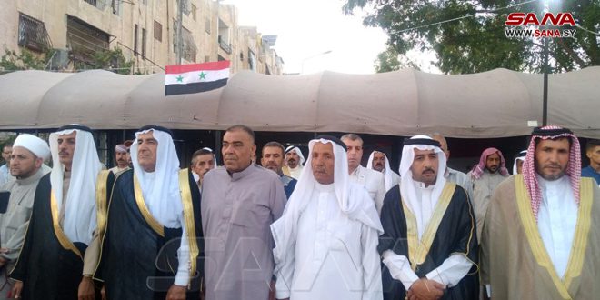 الشيخ عيسى الإبراهيم شيخ قبيلة الدليم عشيرة العساسنة أكد “رفض أبناء العشيرة للتدخل الأجنبي غير الشرعي وكل محاولات تقسيم البلاد تحت أي مسمى، مع الرفض التام لوجود أي راية غير راية الجمهورية العربية السورية”.