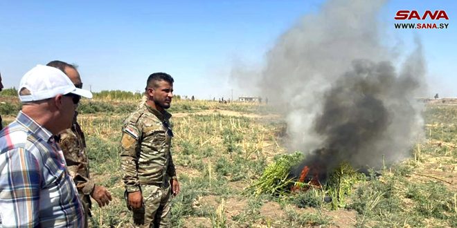 وذكر مصدر في الجهات المختصة لمراسل سانا أنه “بعد عمليات متابعة وتقصي تم ضبط المساحة المزروعة بمادة الحشيش والمقدرة بنحو 2 دونم، وبأخذ عينة من المزروعات تم التأكد أنها من مادة الحشيش المخدر فقامت الجهات المختصة بإجراء اللازم، وجرف الحقول المزروعة بتلك المادة وإتلافها أصولاً”.