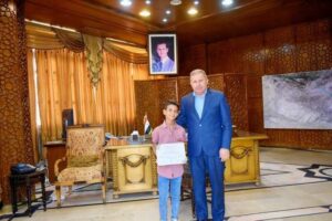 السيد المحافظ اثنى على تميز وتفوق التلميذين منوها بجهود مدربتيهما واسرتيهما متمنيا لهما دوام التفوق والنجاح