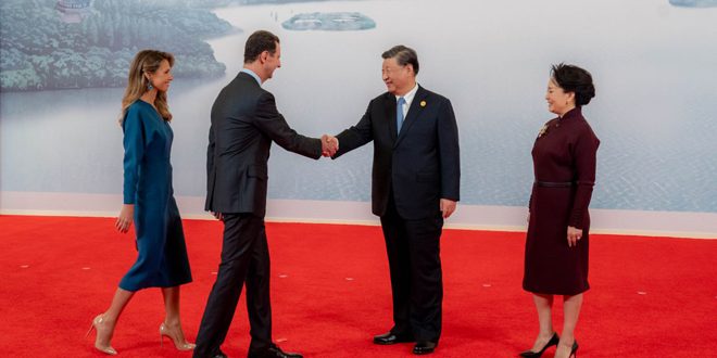 حضر السيد الرئيس بشار الأسد والسيدة الأولى أسماء الأسد المأدبة الرسمية التي أقامها الرئيس الصيني شي جين بينغ والسيدة عقيلته بينغ لي يوان على شرف الزعماء ورؤساء الوفود المدعوين لحفل افتتاح دورة الألعاب الآسيوية التاسعة عشرة الذي ينطلق مساء اليوم في مدينة خانجو الصينية.