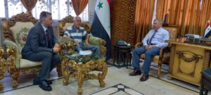 السيد محافظ دير الزور فاضل نجار التقى السيدين الكرك والفتيح وخلال اللقاء وجه الشكر للسيد محمد الكرك على جهوده المبذولة خلال ادارته للمديرية ، وزود المدير الجديد بالتوجيهات متمنيا له النجاح في مهمته .