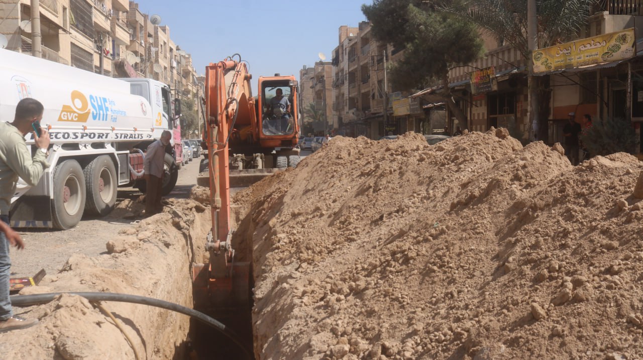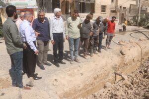 تفقد السيد محافظ دير الزور فاضل نجار عمل ورشات مؤسسة مياه الشرب والصرف الصحي بدير الزور التي تقوم بإصلاح واستبدال عدد من خطوط شبكة الصرف الصحي في منطقة جامع الفتح بحي القصور .