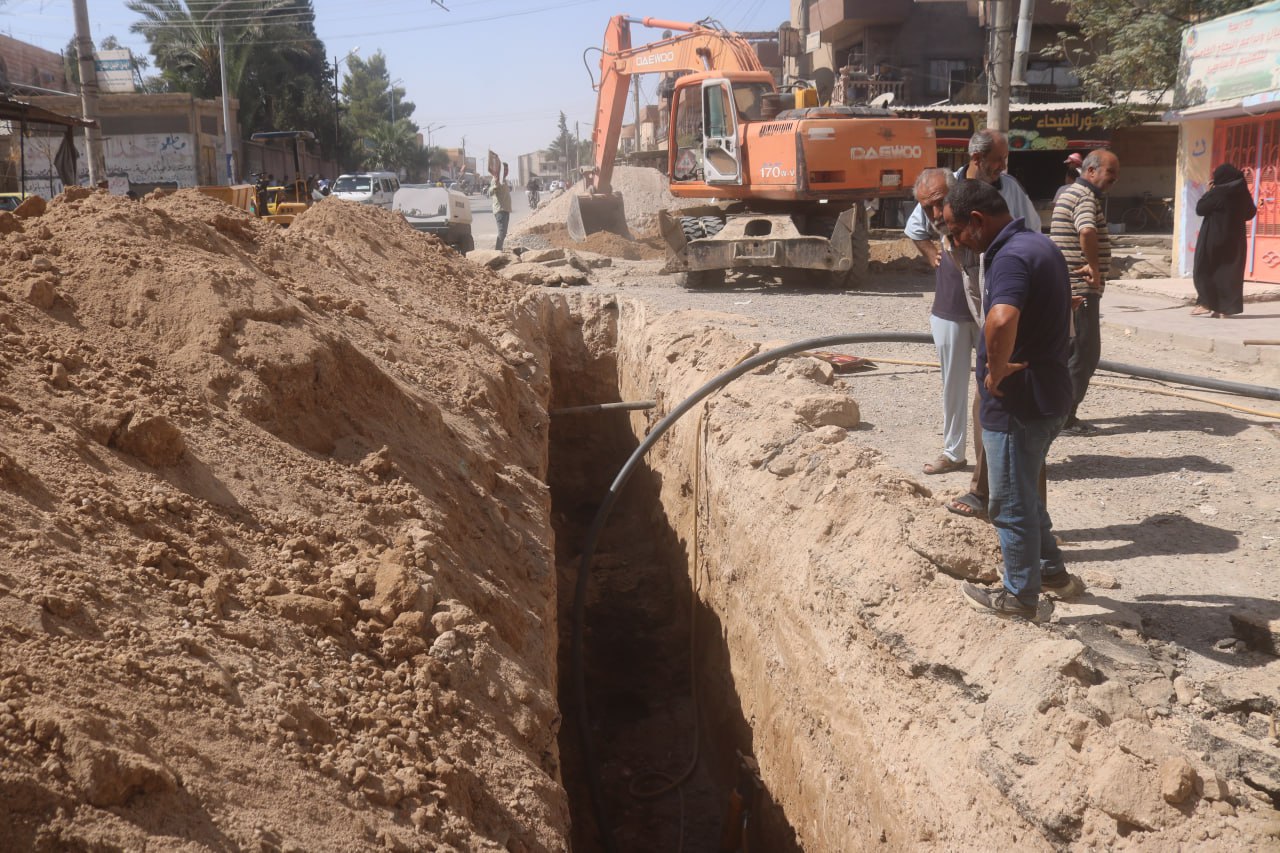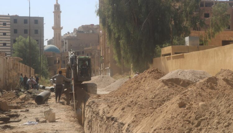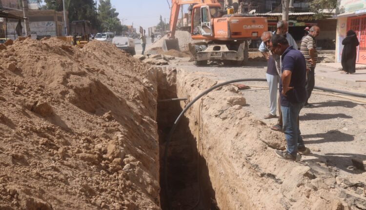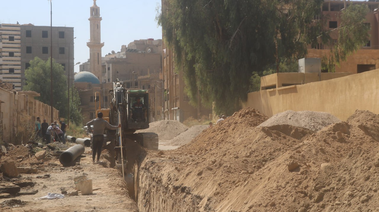 باشرت المؤسسة العامة لمياه الشرب والصرف الصحي بدير الزور تنفيذ اعمال مشروع تعزيل واستبدال شبكة الصرف الصحي في عدد من شوارع حي القصور وجمعية الإسكان العسكري بدير الزور .