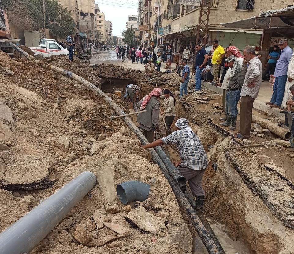 اعادت المؤسسة العامة لمياه الشرب والصرف الصحي بدير الزور ضخ المياه الى احياء المدينة بعد ان تم اصلاح العطل الطارئ الذي حصل صباح اليوم على احد الخطوط الرئيسية في المدينة .