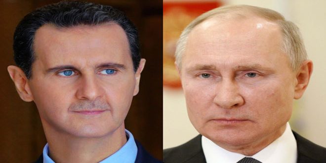 بحث السيد الرئيس بشار الأسد في اتصال هاتفي مع الرئيس الروسي فلاديمير بوتين سبل وقف العدوان الإسرائيلي على قطاع غزة.