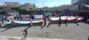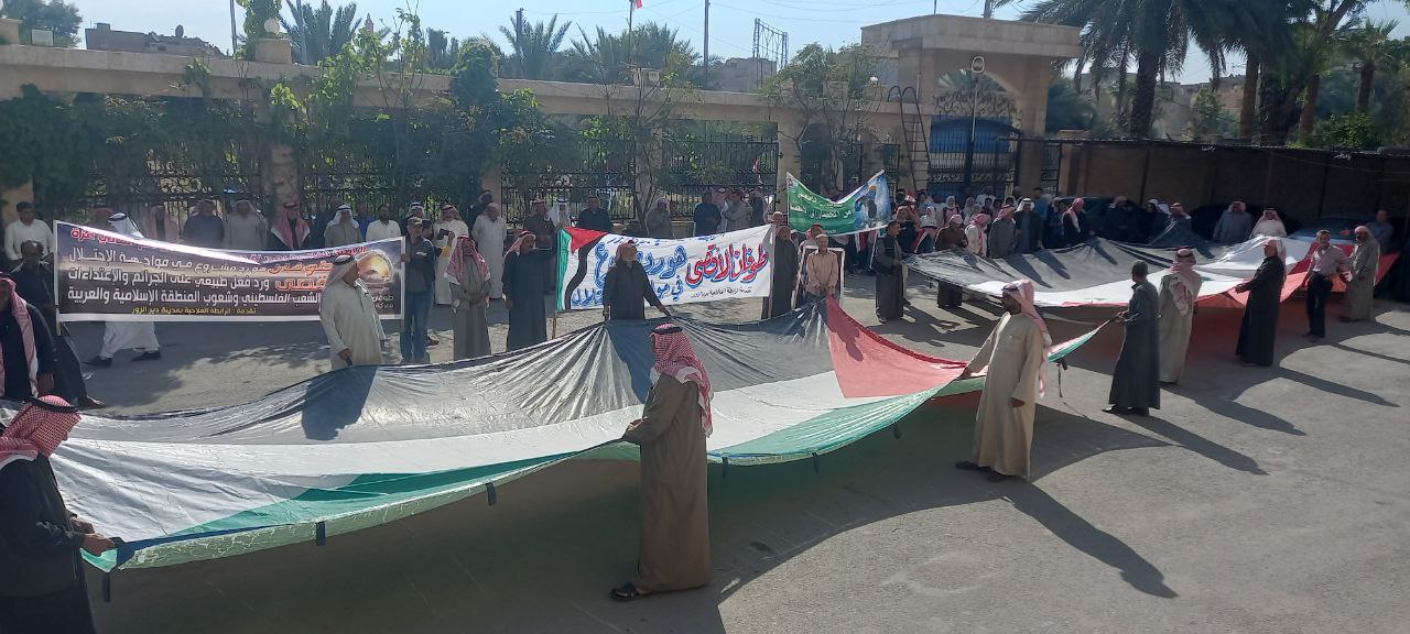 حيث نفذ اتحاد الفلاحين بدير الزور امام مبنى الاتحاد وقفة تضامنية مع الشعب الفلسطيني و دعما لعملية طوفان الأقصى والتنديد بجرائم الكيان الصهيوني بحق أهالي غزة.