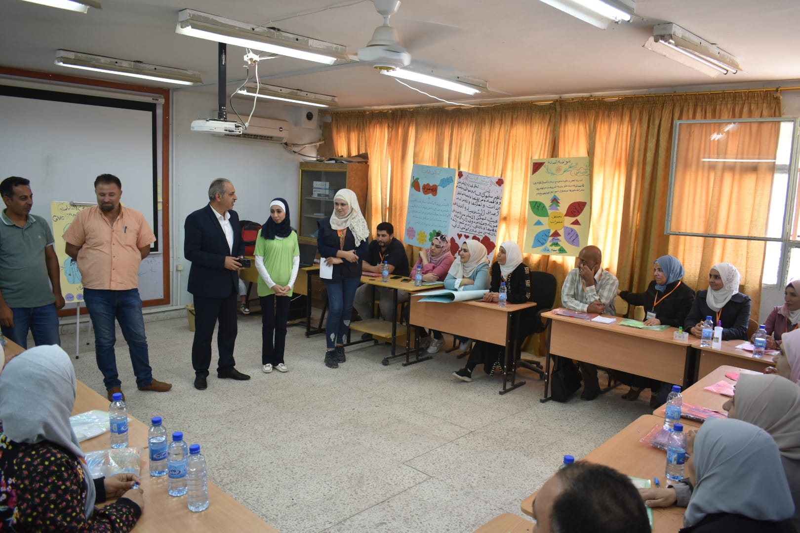 حضر الورشة كل من معاون مدير التربية التعليم الأساسي اياد شهاب و رئيس دائرة التعليم المهني ياسر الحسين ورئيس دائرة التخطيط والتعاون الدولي شهرزاد فتيح .